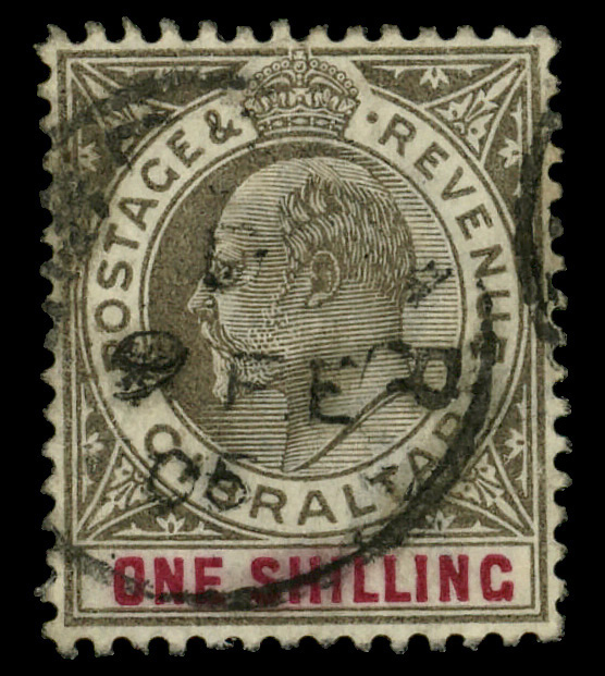 8361 O 44 image1903, King Edward VII, 1s black & carmine, Crown CA watermark (Scott 44), Very Fine to Extremely Fine.