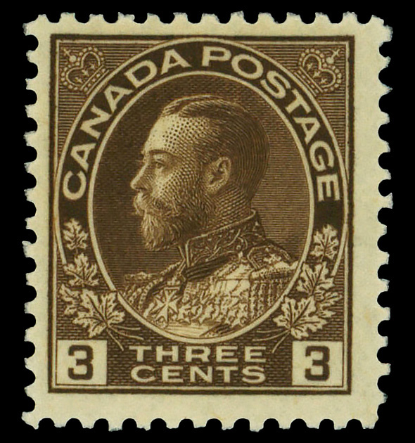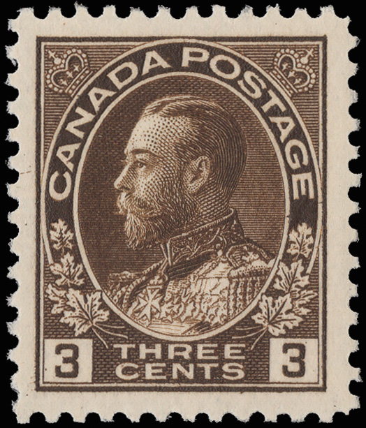 8420 nh 108c image1918, King George V "Admiral", 3¢ brown, dry printing (Scott 108c), o.g., never hinged, Fine to Very Fine.