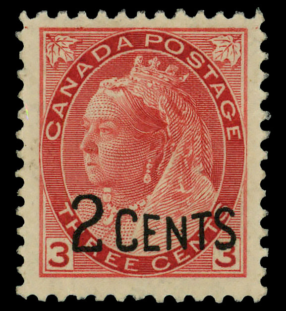 8412 nh 88 image1899, Queen Victoria "Numeral", 2¢ on 3¢ carmine (Scott 88), o.g., never hinged, Very Fine to Extremely Fine.