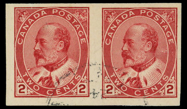 8413 O 90 image1903, King Edward VII, 2¢ carmine, type II, imperf., pair, light cancel, Fine to Very Fine.