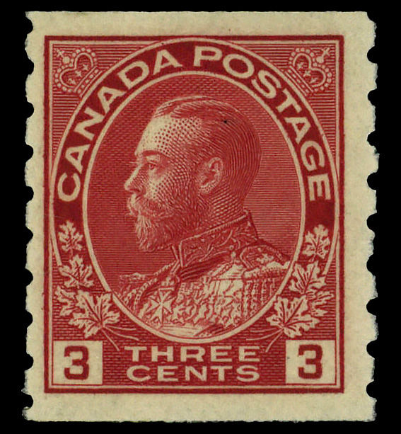 8428 og 130 image1924, King George V "Admiral", 3¢ carmine, type I, wet printing, horizontal coil, perf. 8 vertically (Scott 130), o.g., lightly hinged, Fine to Very Fine.