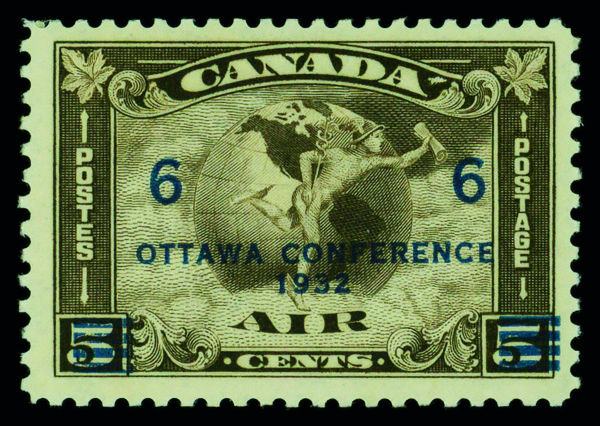 8466 nh C4 imageAirmail, 1932, Ottawa Conference, 6¢ on 5¢ olive brown (Scott C4), o.g., never hinged, Fine to Very Fine.