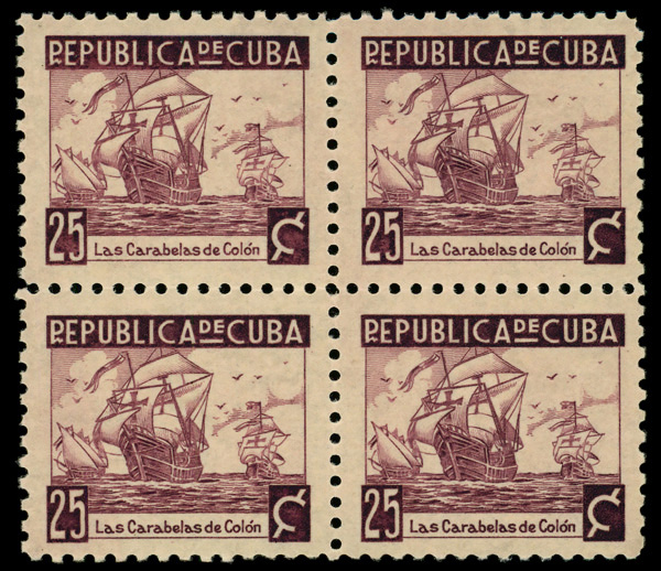 8532 nhbl 354 image1937, 25c rose lilac Fleet of Columbus (Scott 354), block of 4, o.g., never hinged, Extremely Fine.