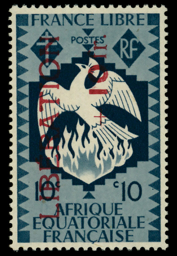 8552 og B15 image1944, 10c+10fr dark blue 'LIBERATION' overprint (Scott B15), o.g., lightly hinged, Very Fine to Extremely Fine.