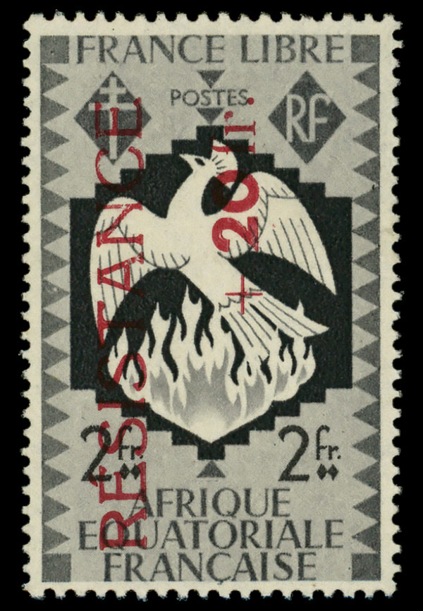 8553 og B28 image1944, 40c+10fr dark slate green 'LIBERATION' overprint (Scott B28), o.g., very lightly hinged, Very Fine.
