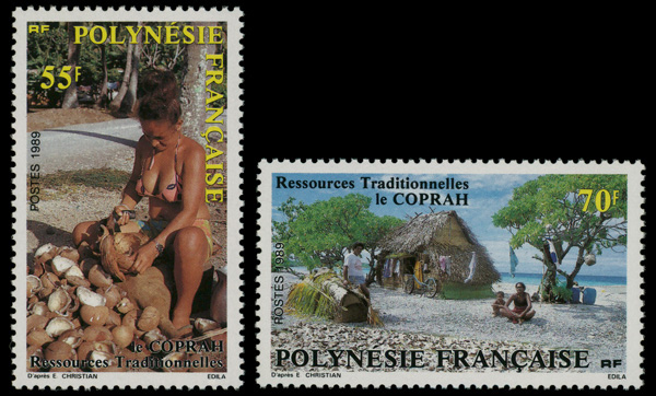 8555 nh 505-506 image1989, 55fr & 70fr Copra Industry, complete (Scott 505-506), set of 2, o.g., never hinged, Extremely Fine.