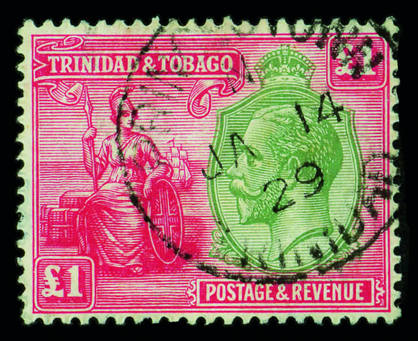 9522 O 31 image1922, "Britannia" and King George V, £1 green & bright rose (Scott 31), single, Fine to Very Fine.