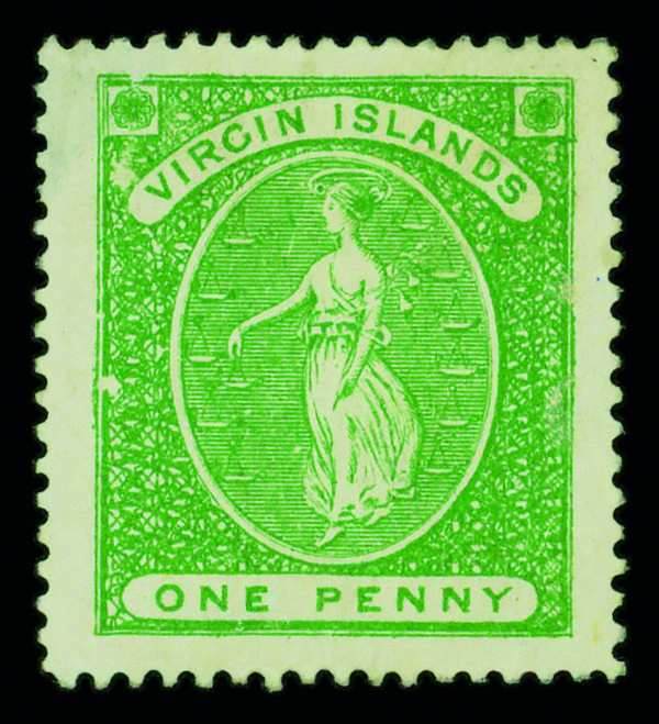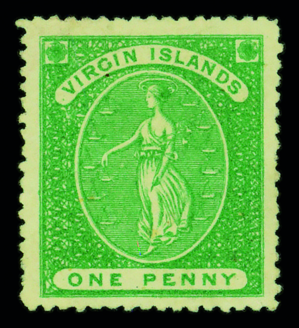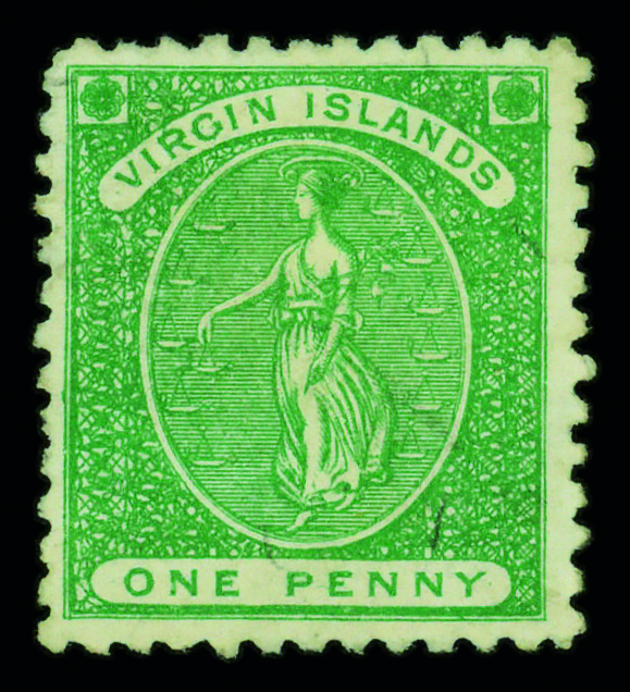 9534 ng 1 image1866, St. Ursula, 1d green, perf 12, white paper (Scott 1), single, unused without gum, Fine to Very Fine.