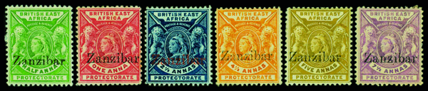 9552 og 32-37 image1896, overprints on British East Africa issues, ½a to 7½a complete (Scott 32-37), complete set of singles, o.g., hinge remnant, Fine to Very Fine.