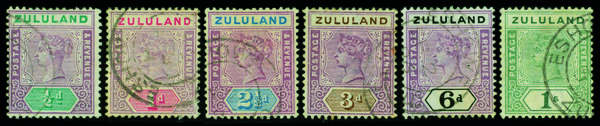 9555 O 15-20 image1894, Queen Victoria ½p-1sh (Scott 15-20), singles, Fine to Very Fine.