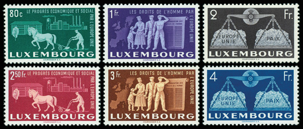 9577 nh 272-277 image1951, United Europe complete (Scott 272-277), o.g., never hinged, Extremely Fine.