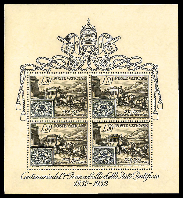 9595 nh 155a image1952 Stamp Centenary souvenir sheet (Scott 155a), o.g., never hinged, Very Fine.