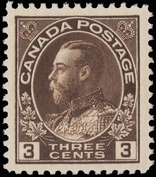 9562 nh 108 image1918, King George V "Admiral", 3¢ brown, wet printing (Scott 108), o.g., never hinged, fresh and beautifully centered, Very Fine to Extremely Fine, with a 2018 P.S.E. certificate graded VF-XF 85.