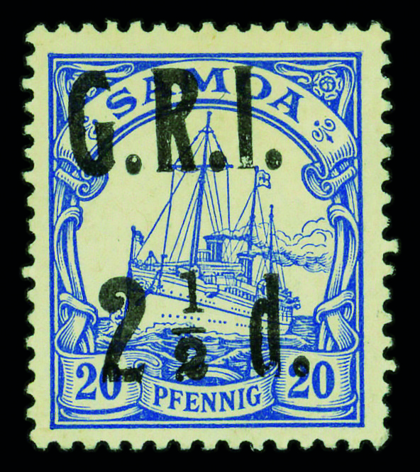 9582 og 104 image1914, G.R.I. 2½d on German Samoa 20pf ultramarine (Scott 104), single, o.g., hinge remnant, Very Fine.