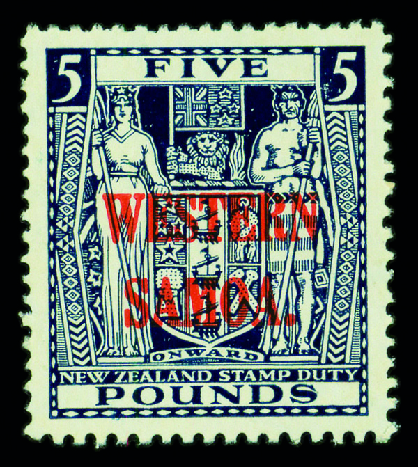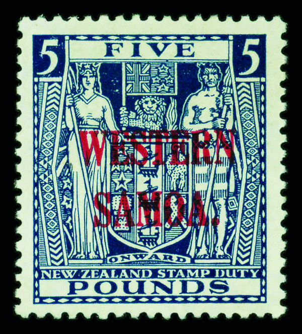 9591 og 180 image1935, New Zealand Postal-Fiscal stamps overprinted in carmine Western Samoa (Scott 180), single, o.g., lightly hinged, Extremely Fine.