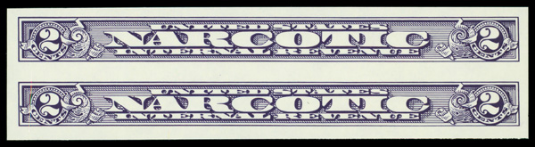9141 nh RJA80a imageNarcotic Tax, 1963, 2¢ violet, imperf (Scott RJA80a), vertical pair, o.g., never hinged, Extremely Fine.