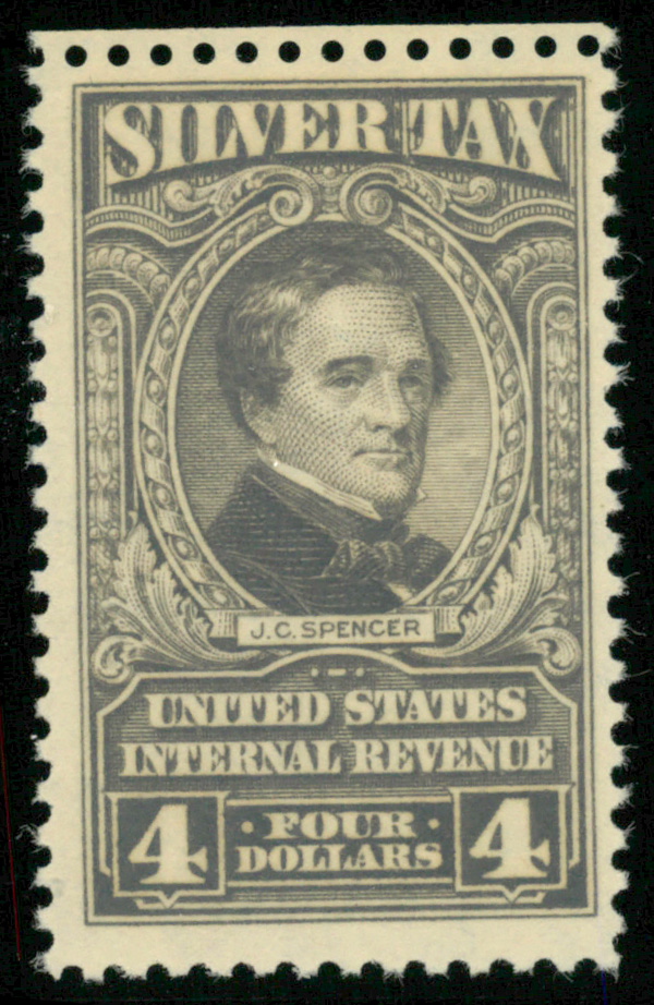 9138 nh RG123 imageSilver Tax, 1944, $4 gray (Scott RG123), o.g., never hinged, Fine to Very Fine.