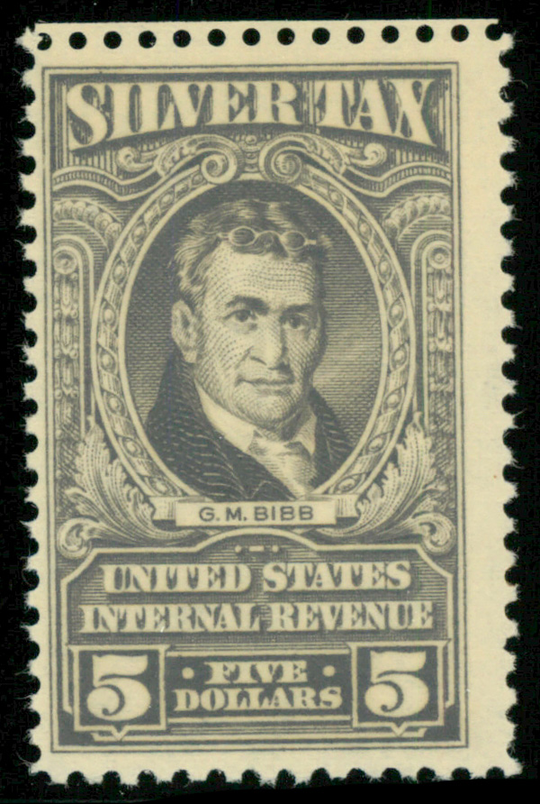 9139 nh RG124 imageSilver Tax, 1944, $5 gray (Scott RG124), o.g., never hinged, Fine.