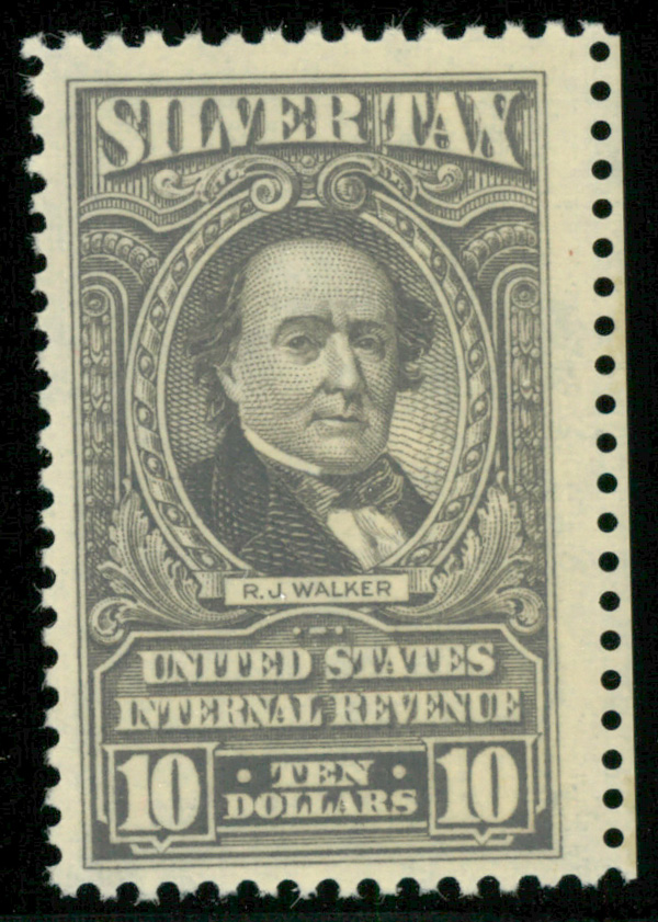 9140 nh RG125 imageSilver Tax, 1944, $10 gray (Scott RG125), o.g., never hinged (gum skip), Fine to Very Fine.