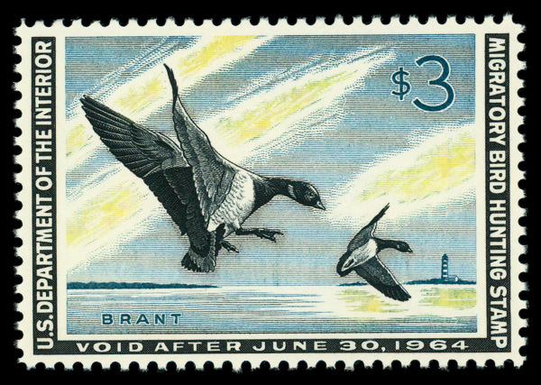 9143 nh RW30 imageFederal Duck Stamp, 1963, $3 Brants (Scott RW30), o.g., never hinged, Very Fine.