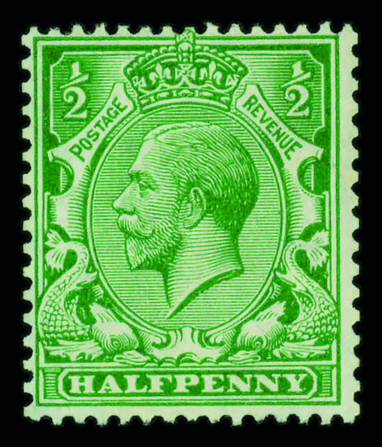 9157 og 177 image1913, King George V coil, ½d bright green, Royal Cypher Multiple watermark (Scott 177), single, o.g., hinge remnant, Fine.
