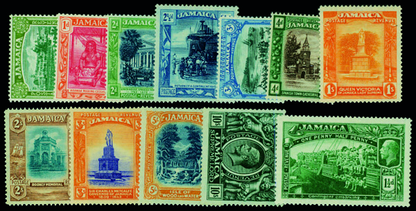 9256 og 75-87 image1919-21, ½d-10s King George V Pictorials complete (Scott 75-87), complete set of singles, o.g., lightly hinged or hinge remnant, Fine to Very Fine.