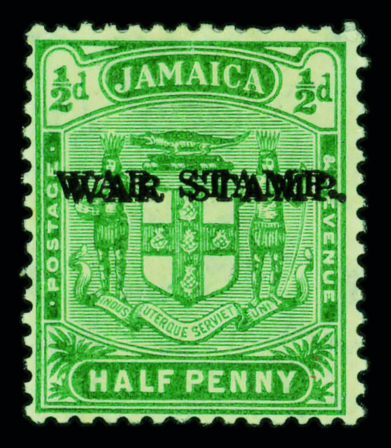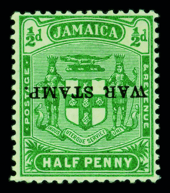 9258 og MR1c imageWar Tax, 1916, ½d green, inverted overprint (Scott MR1c), single, o.g., lightly hinged, Fine to Very Fine.