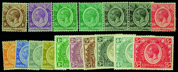 9259 og 18-34 image1922-27, King George V 1¢-5sh (Scott 18-34), singles, o.g., lightly hinged or hinge remnant, Fine to Very Fine.