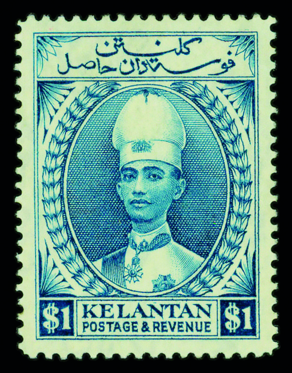 9278 og 27 image1928, Sultan Ismail $1 Ultramarine (Scott 27), single, o.g., lightly hinged, Fine to Very Fine.