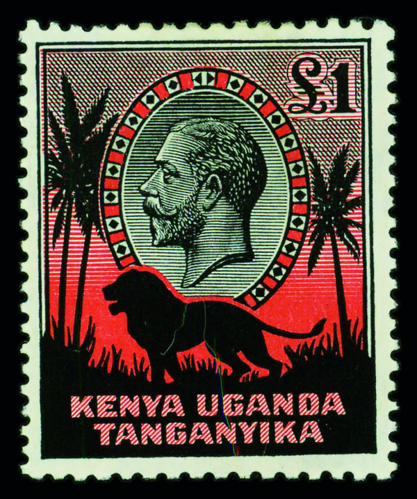 9277 og 83 image1928, King George V, £1 purple & black on red (Scott 83), single, o.g., small hinge remnant, Fine to Very Fine.