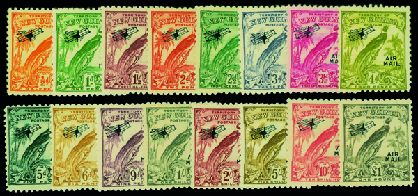 9326 og C28-C43 imageAirmail, 1932-34, Bird of Paradise (without dates), ½d to £1 complete (Scott C28-C43), complete set of singles, o.g., lightly hinged, Fine to Very Fine.