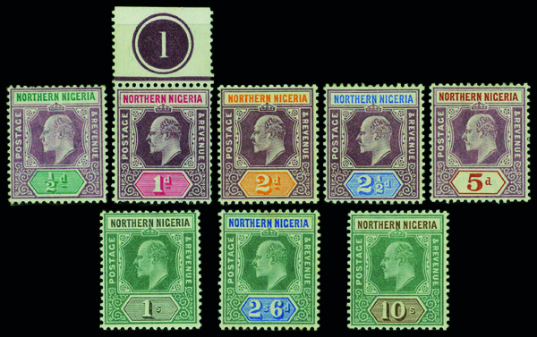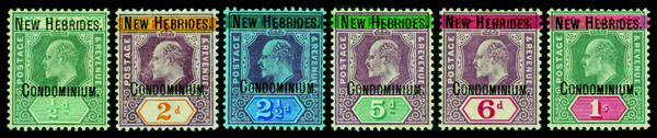 9327 og 1-6 image1908-09, King Edward VII ½p-1sh complete (Scott 1-6), complete set of singles, o.g., lightly hinged or hinge remnant, Fine to Very Fine.