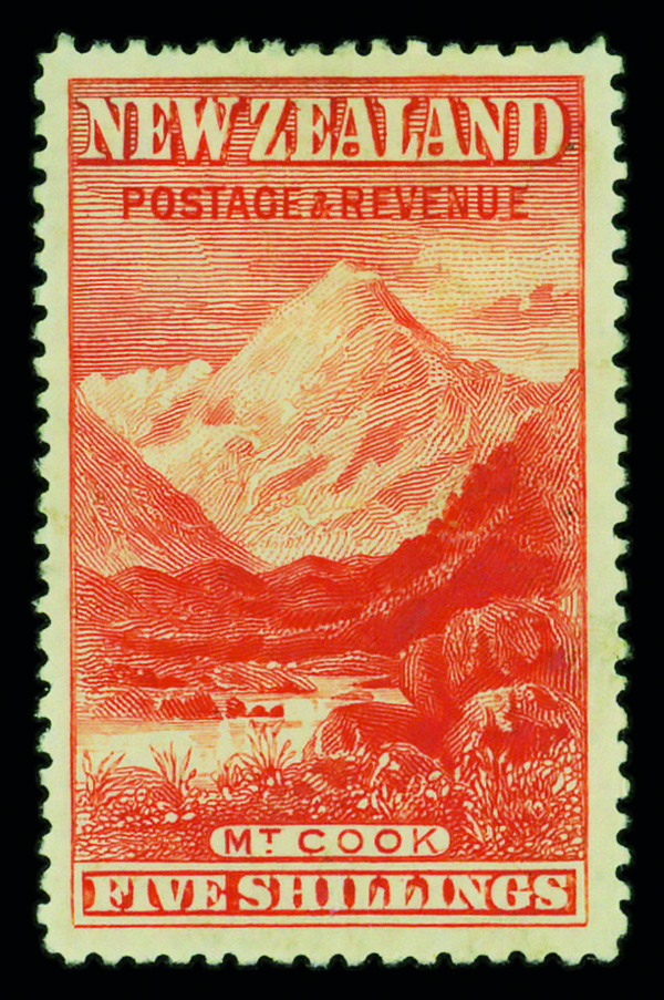 9331 og 83 image1898, Mt. Cook, 5s vermilion, perf 12 to 16 (Scott 83), unwatermarked, single, o.g., hinge remnants, Very Fine.