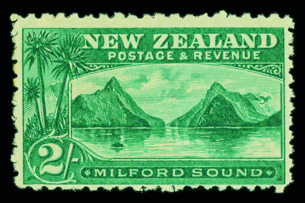 9332 og 121 image1903, Milford Sound, 2s blue green on laid paper, perf 11¼ (Scott 121), unwatermarked, single, o.g., lightly hinged, Fine.