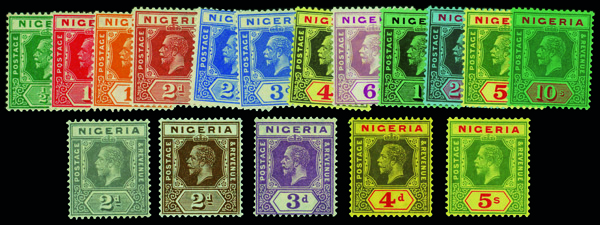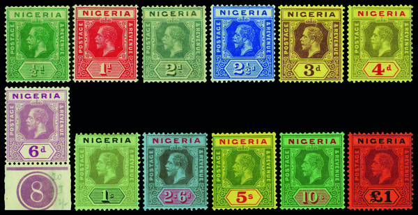 9343 og 1-12 image1914-29, King George V, ½d-£1 complete (Scott 1-12), Multiple Crown CA watermark, complete set of singles, o.g., lightly hinged or hinge remnant, Fine to Very Fine.