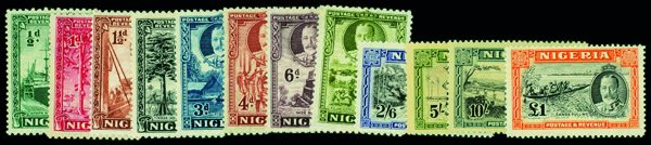 9346 og 38-49 image1936, ½d-£1 King George V pictorials complete (Scott 38-49), complete set of singles, o.g., hinge remnant, Fine to Very Fine.