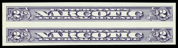 5424 nh RJA80a imageNarcotic Tax, 1963, 2¢ violet, imperf (Scott RJA80a), vertical pair, o.g., never hinged, Extremely Fine.