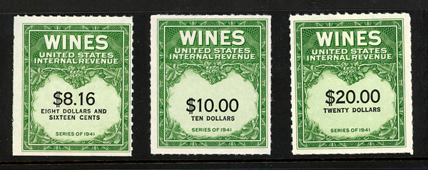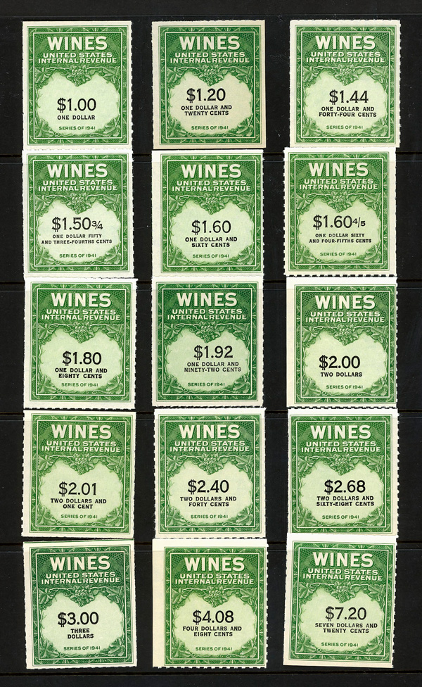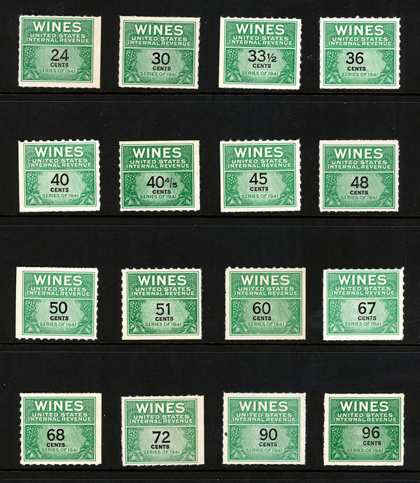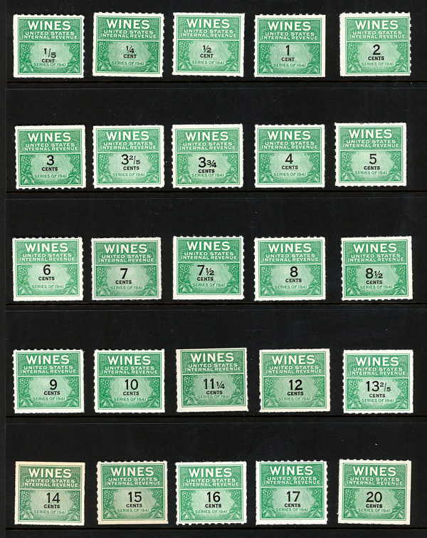5420 ng RE108//RE203 imageWine Stamps, 1942-54, 1/5¢-$20.00 (Scott RE108//RE203), selection of 59 different, without gum as issued, Fine to Very Fine.