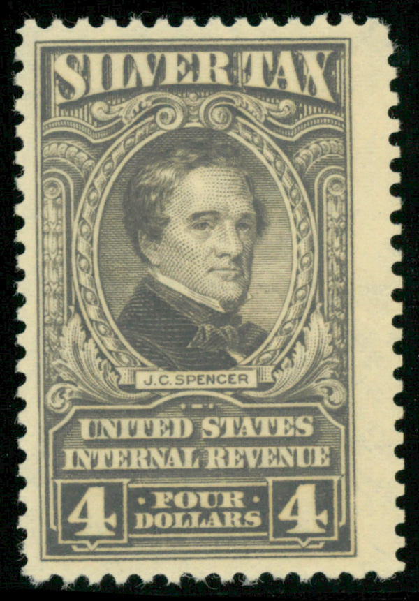 5421 nh RG123 imageSilver Tax, 1944, $4 gray (Scott RG123), o.g., never hinged (noticeable gum skip), Very Fine.