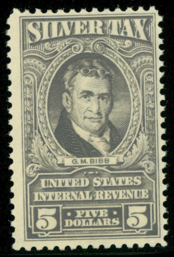 5422 nh RG124 imageSilver Tax, 1944, $5 gray (Scott RG124), o.g., never hinged, Fine.