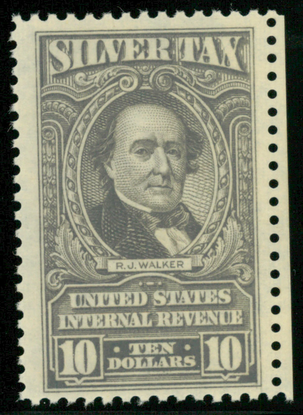 5423 nh RG125 imageSilver Tax, 1944, $10 gray (Scott RG125), o.g., never hinged (gum skips), Fine to Very Fine.