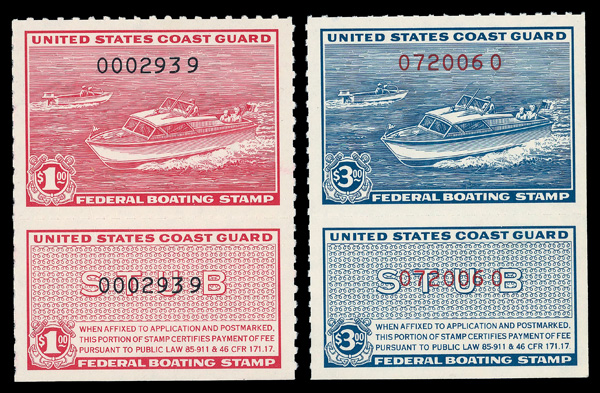5426 nh RVB1-RVB2 imageBoating Stamps, 1960, $1-$3 complete (Scott RVB1-RVB2), o.g., never hinged, Extremely Fine.