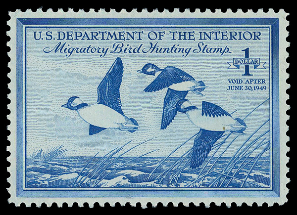 5434 nh RW15 imageFederal Duck Stamp, 1948, $1 Buffleheads (Scott RW15), o.g., never hinged, Extremely Fine.