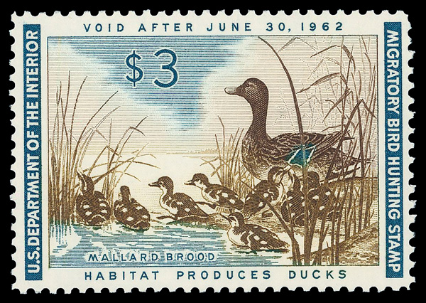 5440 nh RW28 imageFederal Duck Stamp, 1961, $3 Mallards (Scott RW28), o.g., never hinged, Extremely Fine.
