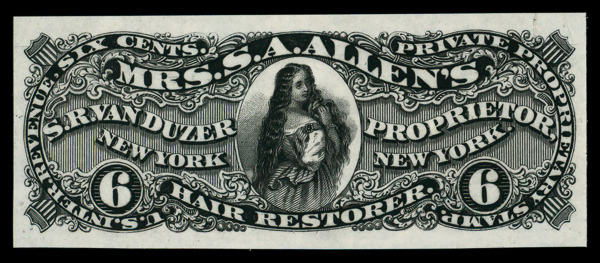 5425 P RS250P3 imageVan Duzer, S.R., 6¢ black, plate proof on India (Scott RS250P3), without gum as issued, Extremely Fine.