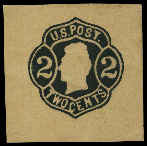 5409 og W55 imageWrapper, 1864, Nesbitt 4th Issue, 2¢ black on buff, "U.S. POST" above, wide design (Scott W55), cut square, without gum as issued, Extremely Fine.