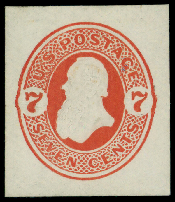5411 og U88 imageEnvelope, 1871, Reay Issue, 7¢ vermilion on amber (Scott U88), cut square, without gum as issued, Very Fine.