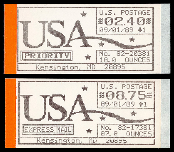 5406 nh CVP11a-CVP15a image1989, 25¢-$8.75 Computer Vended Postage, Kensington MD, machine #82, 1st Day Dated, complete (Scott CVP11a-CVP15a), set of 5, o.g., never hinged, Very Fine.