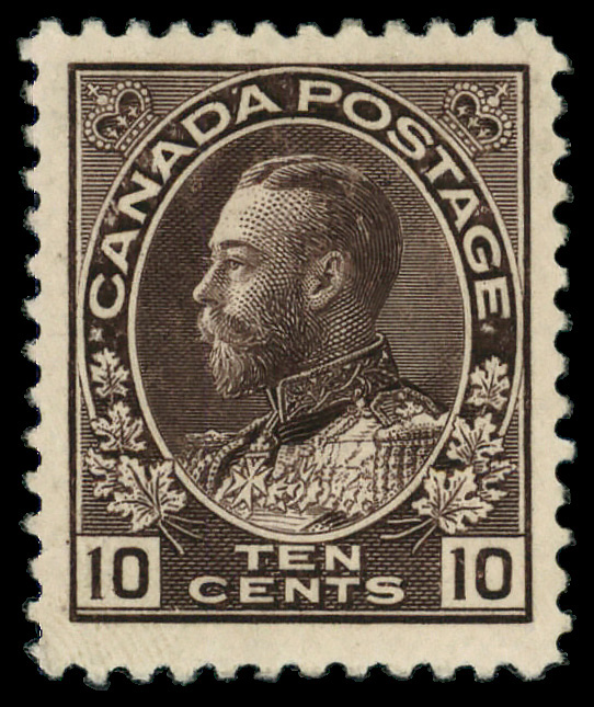 5719 og 116 image1912, King George V "Admiral", 10¢ plum (Scott 116), o.g., hinge remnant, Very Fine to Extremely Fine.