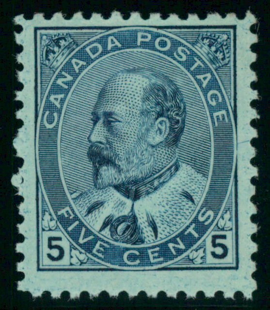 5696 og 91 image1903, King Edward VII, 5¢ blue, on bluish paper (Scott 91), o.g., hinged, Fine to Very Fine.